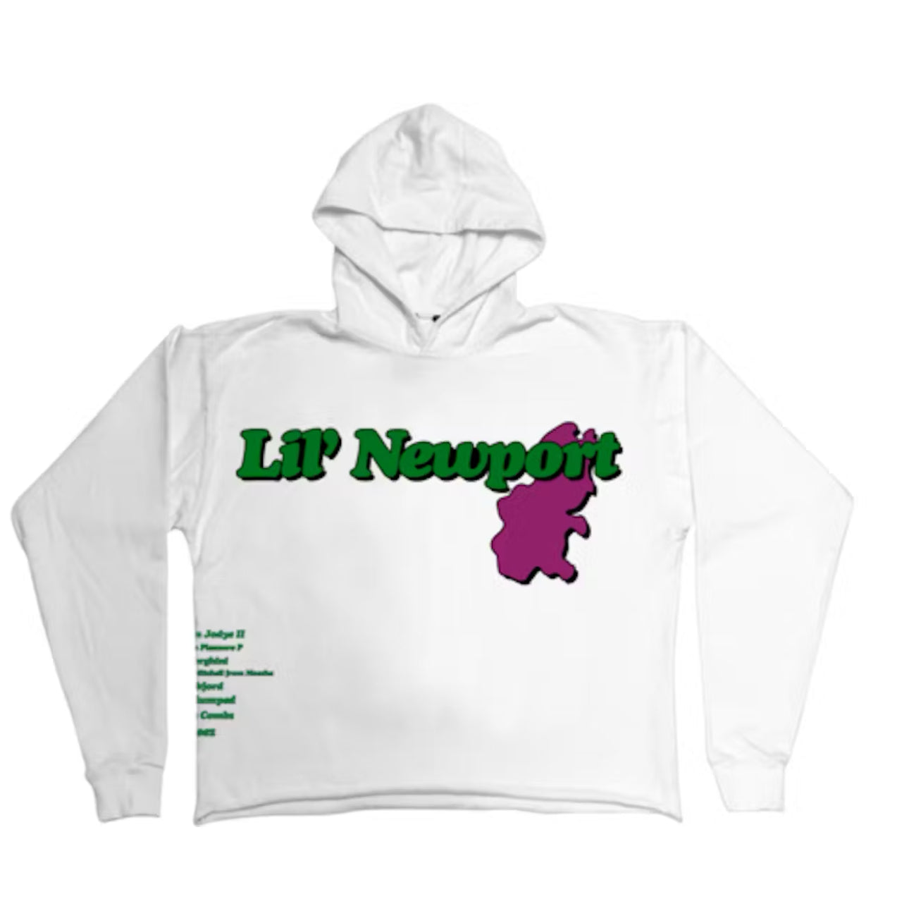 Step into exclusive streetwear culture with the Vlone Yams Day “Lil’ Newport” Hoodie. This limited edition piece features bold green “Lil’ Newport” text across the chest over a vivid purple map design, making a tribute to NYC’s underground scene. On the back, an oversized Vlone “V” is paired with the same map motif and shoutouts to iconic names from Yams Day, honoring the legacy of A$AP Yams.
